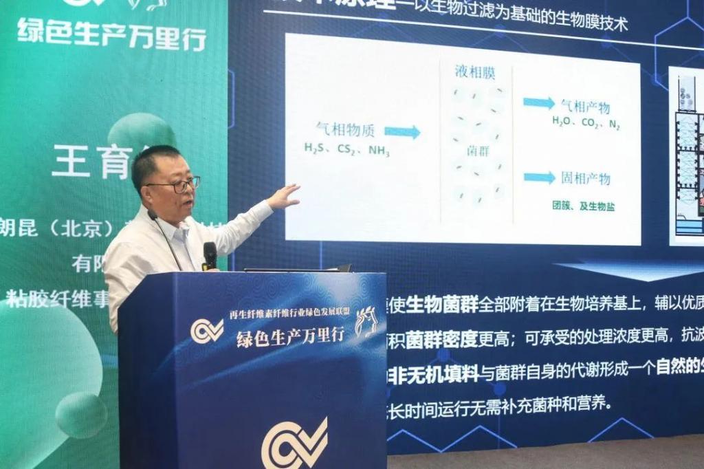 朗昆(北京)新环保科技有限公司粘胶纤维事业部总经理王育红分享了朗昆生物法技术在粘胶纤维行业废气治理上的应用案例。他表示,朗昆生物法技术有三大优势,一是可同时处理含有硫化氢和二硫化碳的混合气体;二是可解决粘胶纤维行业低浓度生产废气的达标排放问题;三是处理较低浓度的生产废气时,可实现较高的环保治理水平。目前,该技术在宜宾海斯特、新乡化纤、中泰纺织等企业均有应用。