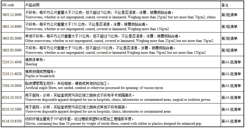 2020年12月29日,美国贸易代表办公室(USTR)表示,将延长部分中国产品的关税免豁期,自2021年1月1日延长至2021年3月31日。延长关税免豁期的产品包括以下医疗用纺织和成衣产品: