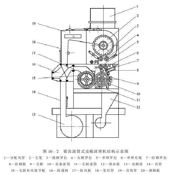 锯齿式皮棉清理机由集棉、给棉、清棉和刷棉四大部分组成。