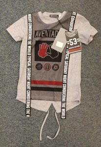 2016年9月30日,欧盟委员会非食品类快速预警系统(RAPEX)对中国产“ARMATAMILITARE”牌女童T恤衫发出消费者警告(预警编号:A12/1164/16)。本案的通报国为塞浦路斯。此次通报的产品为适合6岁以上女童的灰色T恤衫。产品的款式/型号为LF-0884。条形码为5299900946999,批次号为54255。经济合作与发展组织产业分类码(OECDPortalCategory)为67000000-Clothing(服装)。