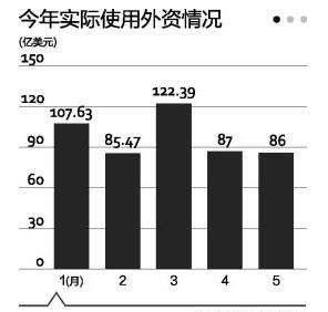 昨日公布的数据表明,5月当月,实际使用外资金额86亿美元,同比下降6.7%。由于外资与项目落地有关联,单月数据低迷并不能代表全年的走势。