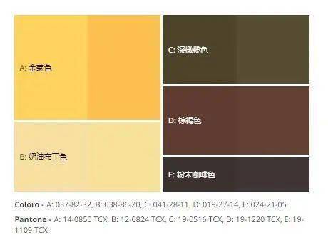 作为本季的关键色彩,灿烂的金菊色在调色板中占据主要位置,并由浅黄调的奶油布丁色加以补充。适用于皮革、皮革替代品和固体材料。深橄榄色和棕色调可作为底色。