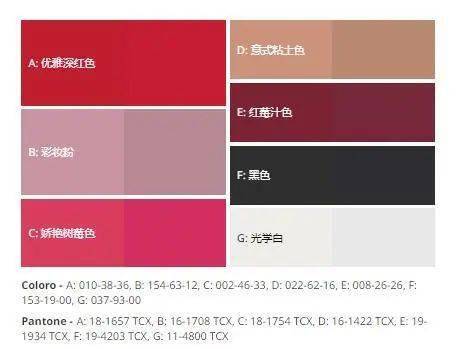 意式粘土色和红莓汁色的组合将吸引更多受众,也能够为印花或#撞色设计增加新意。该色板适用于负责任来源的皮革、#皮革替代品、面料和固体材料。