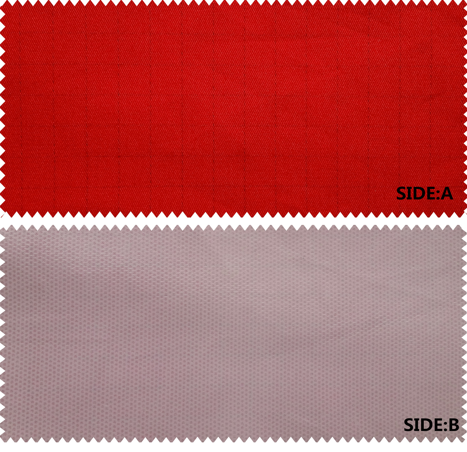 12、防火PU涂层,通过对织物浸轧或PU涂层处理,使织物具有防火效果。并可在织物表面涂成颜色或银色。一般用做窗帘、施工帐篷、工作装等。
