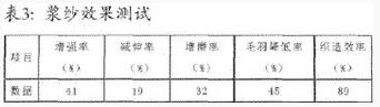 本产品的上浆效果及织造效率见表3。