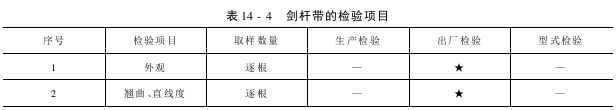 每批剑杆带产品出厂前,都应该按照表14-4规定的出厂检验项目和取样数量进行检验,如有一项检验结果不符合要求,则判定为不合格品,该产品报废处理。