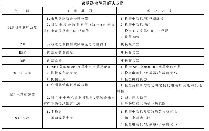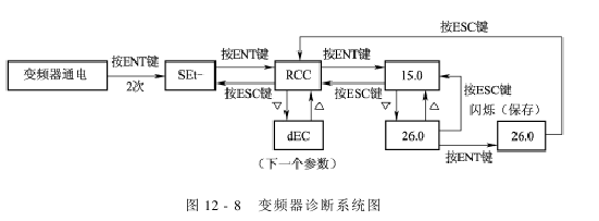 变频器诊断流程图如图12-7所示,变频器诊断系统图如图12-8所示,变频器的故障及解决方案见下表。