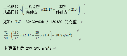 2)。其实际每平方米重量的大小和成品门幅、印染工艺、纺纱线配棉、纱线支数粗细紧密相关,以下每平方米重量计算为简易公式,仅供参考。