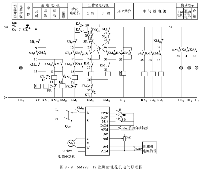 6MY98—17型锯齿轧花机的电气操纵系统采纳三相380V、50Hz的电源,须有接零爱护。
