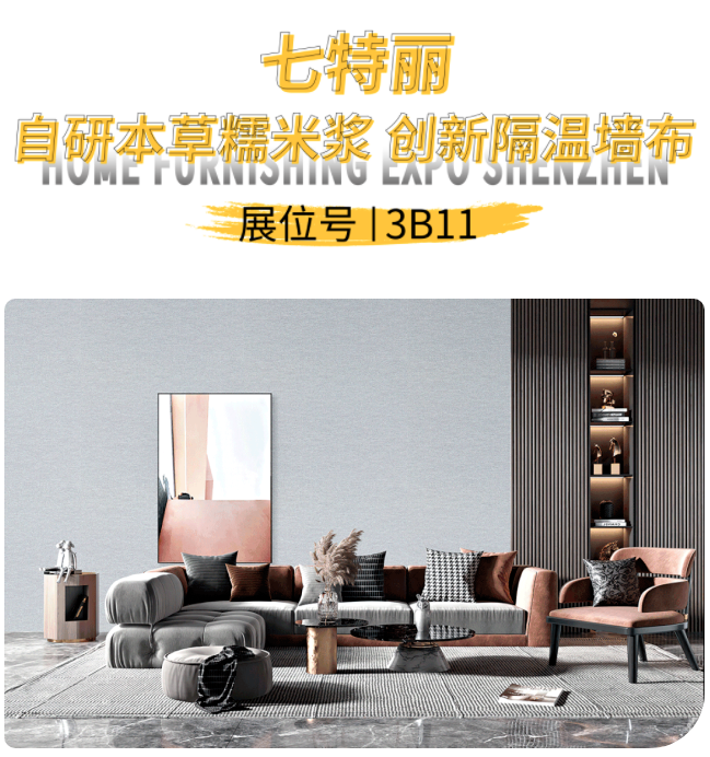 七特丽发泡涂层无缝壁布,2008年开始研发并获得成功,2009年2月申请国家专利并获得授权。同年4月正式成立七特丽装饰材料有限公司,七特丽无缝壁布,釆用棉、麻、丝、涤纺织物做为表面主材,壁布经过360°浸泡式防水处理,背面釆用发泡涂层植绒技术,具有超高宽·无接缝,特环保,特抗拉,特耐磨,透气防潮,消音吸音,好贴耐用等七大美丽的特点。