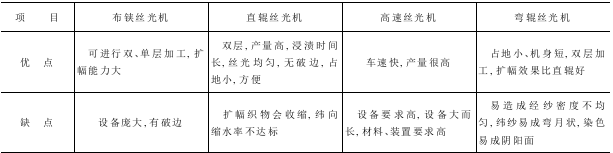 此外,还有高速直辊丝完机及布铗—直辊联合丝完机,这里不再介绍。常用的几种丝完机丝完效果的比较见表6-2。