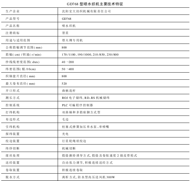 GD768型喷水织机是沈阳宏大布料机械有限责任公司在引进日本日产喷水织机设计制造技术,在生产GD767型的基础上并汲取国外织机先进技术研发的新一代超高速喷水织机。