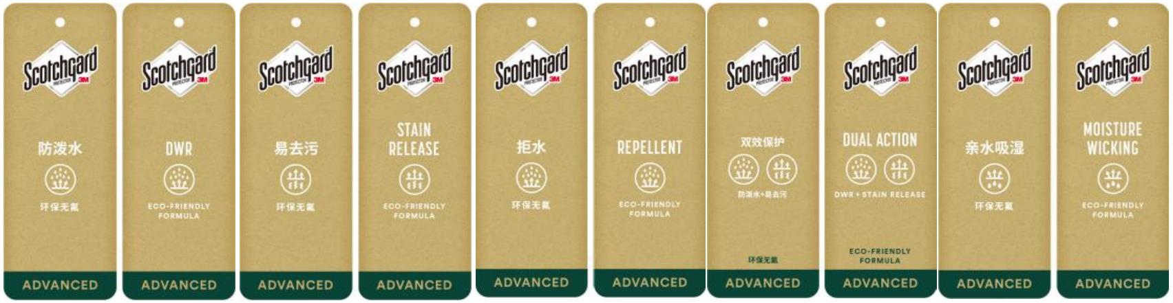 目前,3M思高洁针对不同的功能方案推出了以下产品——无氟防水功能:PM-3705,PM-2688;无氟双效功能(防水+易去污):PM-3888;无氟易去污功能:PM-2740;亲水吸湿易去污功能:PM-226;皮革保护功能:PM-3869,PM-3870。