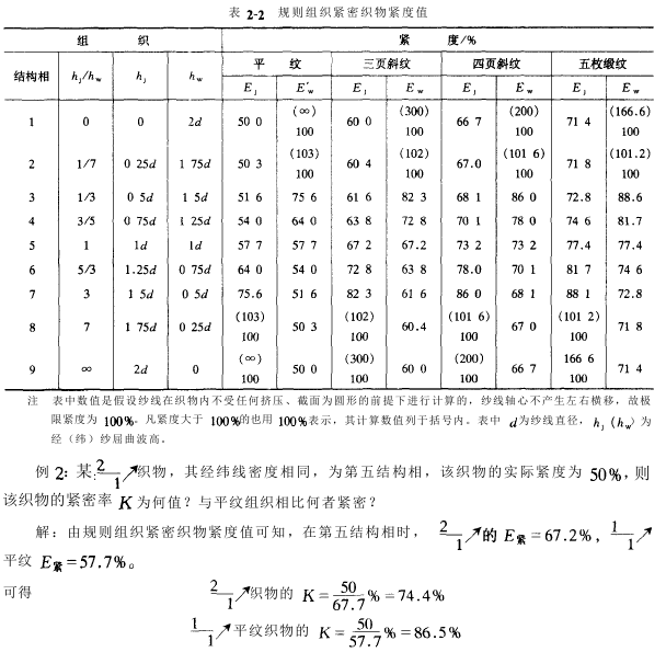 根据该理论可以获得各种不同组织的织物大密度。各种不同组织之间的密度换算关系。
