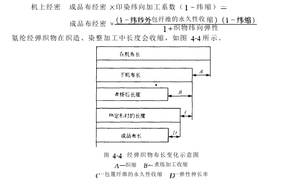 密度的设计和织物在各整理工序中的收缩有关。但影响收缩的因素颇为复杂,和外包纤维的种类、纺纱线线密度、纺纱线捻系数、织物组织、结构以及各道工序的工艺参变数均有关。