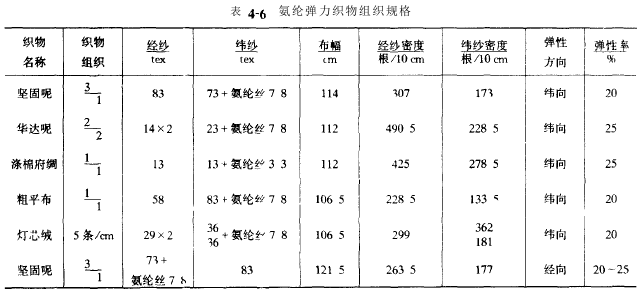 (3)在张力松弛状态下氨纶丝的回缩,会导致织物经纬向下机后以及染整过程中产生较大的收缩。因此在工艺计算时要根据成品经纬向弹性大小加大筘幅和整经长度,并相应调整其它数据。