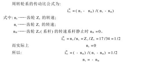 在绞边齿轮Z4 转动并使行星齿轮Z1 、Z1′公转时,行星齿轮又被太阳齿轮Z3 传动而自转。