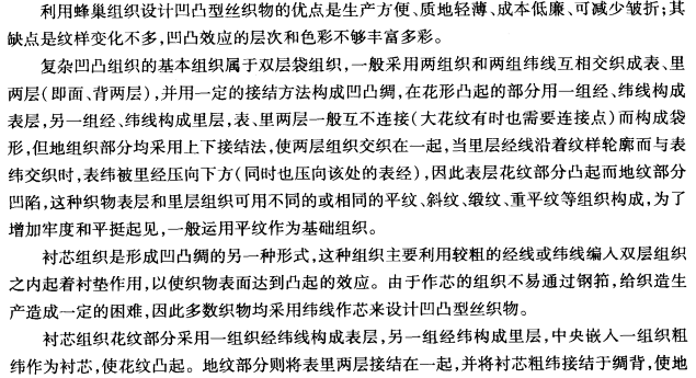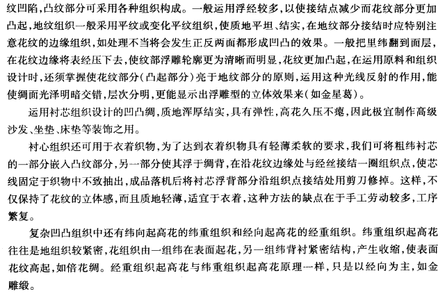 凹凸型丝织物又称高花绸或起泡绸,是一种花纹和组织具有浮雕站体感的绸缎。设计的关键点是: