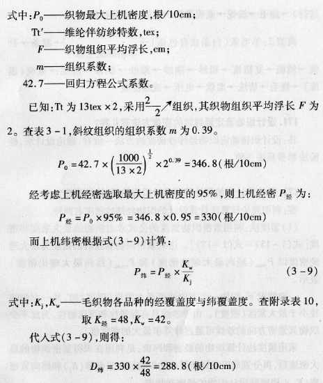 确定织物大上机经纱密度,可根据勃利莱计算公式计算,计算公式如式(3-8):