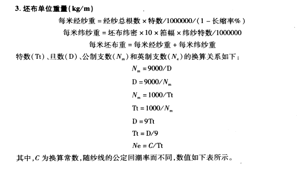 (四)计算上机密度及本色棉布单位重量