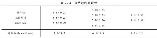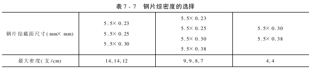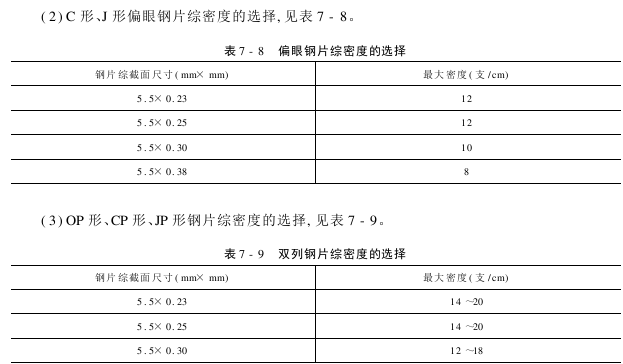 (1)C形、J形、O形钢片综密度的选择,见表7-7。