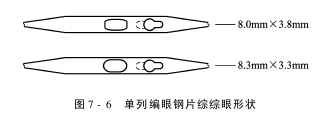 钢片综的长度和经纱开口的要求有关,开口大的用长综丝,开口小的用短综丝,其长短可按
