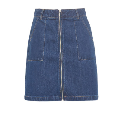 A字廓形的牛仔半身裙,适合有点小肚腩的妹子们,它可以轻松的将你的小肚子给收起。只露出纤长的腿型出来,上身穿着时尚简约却又不失休闲的味道。