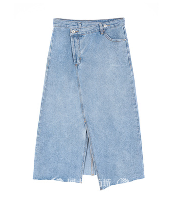 半身裙开衩设计在现在来看已经是非常基础的设计了。很多开衩牛仔裙会在开衩的基础上加上不规则设计,裙摆和腰间的不规则都增强了造型的个性感。