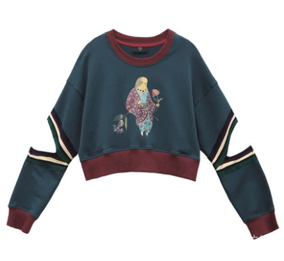 偏短偏修身的圆领卫衣,配合飘逸的百褶半身裙,唯美知性,浪漫有女人味。