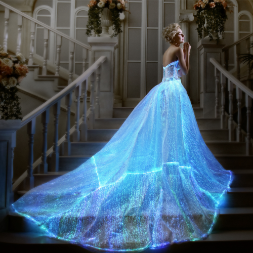 首先服装色彩柔美,发出的完线类似于银河系的梦幻星空,其次发完源是从工作装布料发出并非借物打完,相比于市面上已经有的荧完衣、LED工作装,莱仕特智能婚纱遵循了工作装的外观和舒适性的设计,不发完时看起来和一般工作装并没有什么区别。根据页面介绍该款非常织物由智裳科技自主研发,利用完的传导原理结合非常的面料工艺制成,而且还支持APP远程操纵,一键变色,自动闪烁变化,随音乐舞动。本次众筹产品由智裳科技联合国内婚纱设计师蔡美月共同打造,也是国内首款问世的智能婚纱。