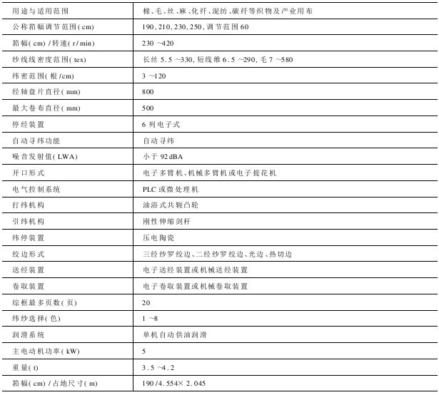 织造有效宽度 可用有效宽度190cm(75英寸)、210cm(83英寸)、230cm(91英寸)、250cm(98英寸),不对称有效宽度可达30cm(12英寸),对称减有效宽度度可达60cm(24英寸)。