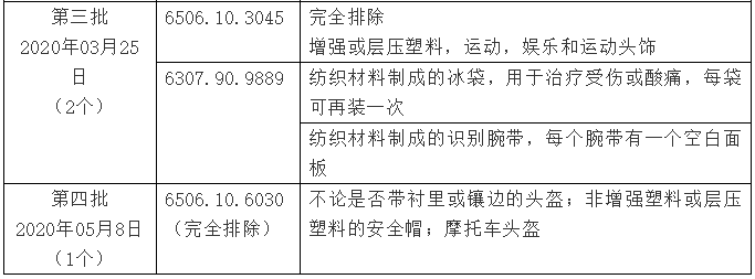 本次排除的纺织服装产品描述与HS码如下: