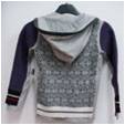 描述:该儿童运动衫适合6岁左右儿童穿着,帽檐处设计有抽绳。标签正面有“Rare”字样,背面标有:价格,型号和条形码等信息。内侧缝有洗唛,产品成份为:“40%棉,30%羔羊毛,10%美利奴绵羊毛,5%马海毛,10%晴纶及5%尼龙”。