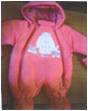 描述:该婴儿连身衣帽檐处有功能性抽绳。正面有熊,兔子和篮子组成的贴花,并标有“Brums”字样,成分为:100%棉。
