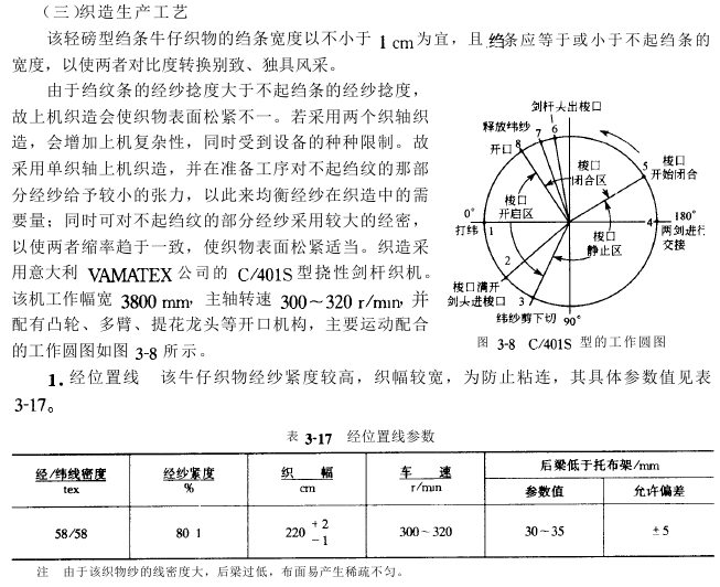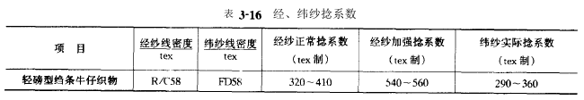 该绉条牛仔织物为轻磅型,规格见表3-15。