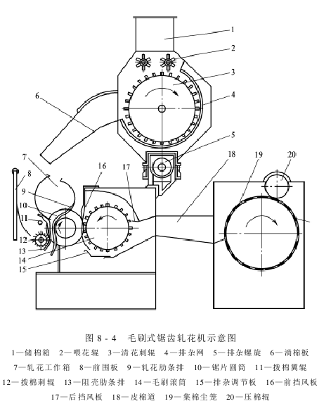 (2)对子棉进行松解,清除杂质,以利于锯齿的勾取以及改善皮棉品质。