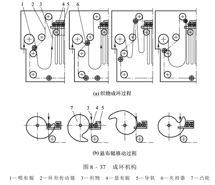 成环长度和喂布辊表面速度、传动链线速度以及相邻两套夹持器的间距有关,可根据工艺需要分别调节。