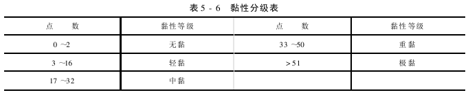将两张铝箔上的粘点合计,根据表5-6进行黏性分级标准推断。