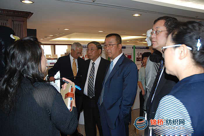 黄伟基秘书长陪同王沈阳会长参观纺拓会面料展示厅