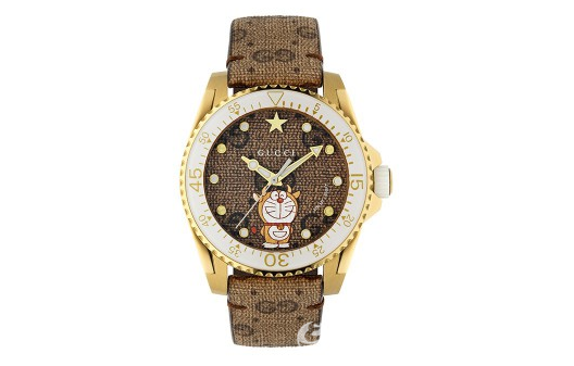 古驰这款2021新年Doraemon × Gucci联名系列,“大儿童”亚力山卓·米开理古驰创作总监将深入人心的动漫角色哆啦A梦融入单品创作中联名系列与Gucci Dive潜水表相结合,表带采用GG Supreme帆布材质。