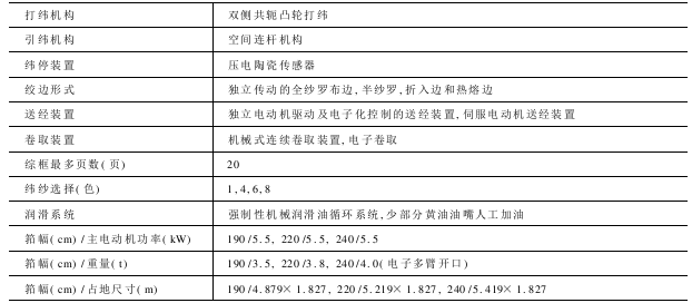 织造有效宽度 可用有效宽度为190cm(75英寸)、220cm(87英寸)、240cm(95英寸),不对称有效宽度可达30cm(12英寸),对称减幅可达到60cm(24英寸)。