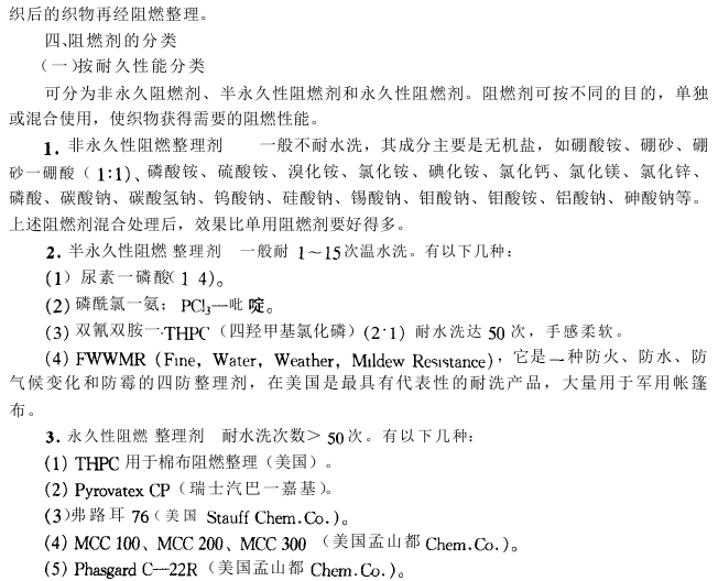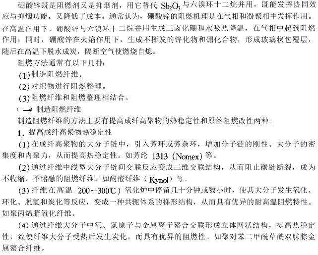 从燃烧过程、燃烧条件及燃烧体系的分析可知,要达到防火目的,就必须切断由可燃物、热和氧气三要素构成的燃烧循环。防火剂的作用就是将纤维燃烧的三个要素,以某种方式抑制或终止该循环过程,以达到防火之目的。