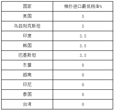 印度作为“一带一路”上的重要大国、全球大的棉花生产国、全球大的棉纱出口国之一,减免关税政策的出台势必对该国棉花产业产生重大影响。据印度业内人士透露,印度总理访华期间中国领导人表示将促进中印之间的棉纱贸易,并承诺将下调印度棉纱进口关税。据某位业内人士称,关税的减免及棉纱进口无配额限制,这两大优势或将促进中国印巴纱进口量的再次突破,将会促进国内棉花与纺企的快速转型。印度承诺将下调印度棉纱进口关税。下图是中国从各国家、地区进口棉纱的低税率。