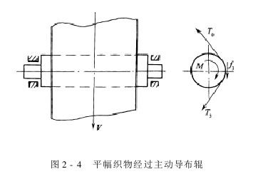 因此,平幅织物经过主动导布辊后,其经向张力将降低。平幅织物经过的主动导布辊越多,经向张力降低得也越多。