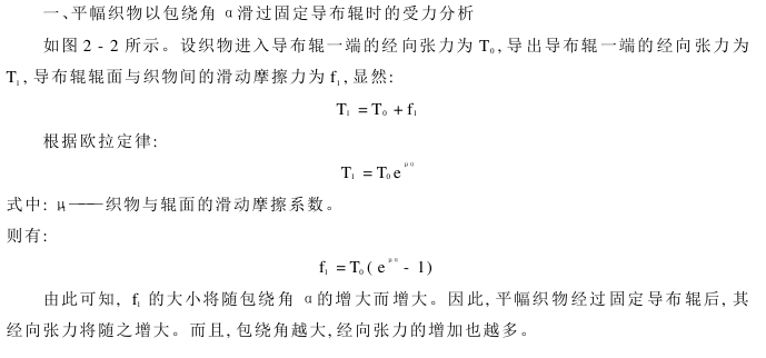 因此,平幅织物经过被动导布辊后,其经向张力也将随之增大。平幅织物经过的被动导布辊越多,经向张力的增加也越多。