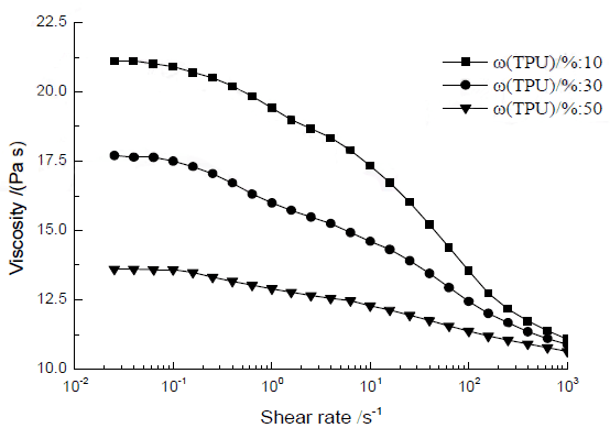 采纳德国安东帕商贸有限公司PhysicaMCR301型流变仪,测定不同TPU含量的铸膜液在20℃下的流变曲线。