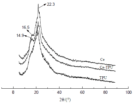 图4Ce膜、TPU膜及Ce-TPU共混膜的XRD