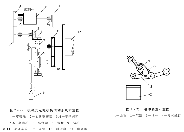 缓冲装置:送经机构的缓冲装置是一个液压缓冲器,可减小后梁因开口、打纬休闲产生的震动,去除经纱张力的高频波动(图2-23)。