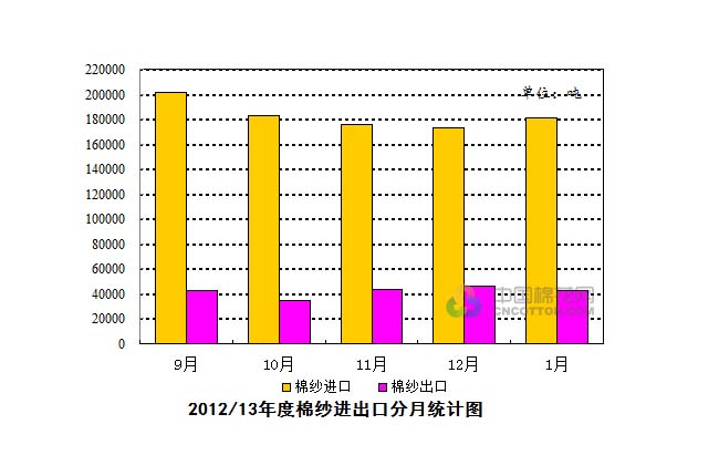 据海关统计,2014年1月,我国棉纱进口18.09万吨,环比增加4.7%,增幅较上月扩大6.55个百分点,较去年同期缩减3.89个百分点;同比减少0.56%,减幅较上月扩大3.69个百分点,较去年同期扩大154.43个百分点。同月出口棉纱4.27万吨,环比减少7.5%,减幅较上月扩大13.77个百分点,较去年同期扩大24.32个百分点;同比减少22.02%,减幅较上月扩大20.5个百分点,较去年同期扩大149.36个百分点。