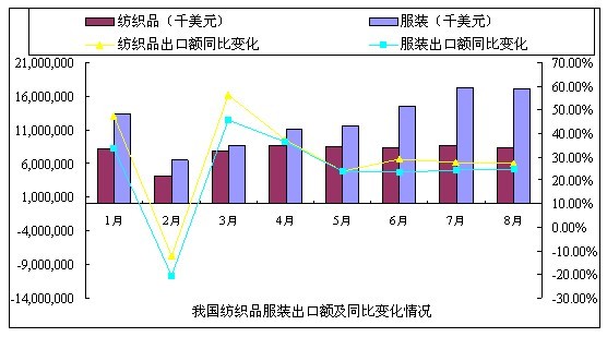 进入下半年之后,国内纺织服装出口并未如此前预期般的出现大幅回落,7月出口甚至创出历史新高,8月出口数据也仍然保持两位数增长。业内指出,当前纺织服装出口增长以价涨为主,真正反映出口真实情况的数量增长则仅为个位数,且在对外围经济体经济前景担忧增加以及人民币升值预期明确的背景下,未来出口预期并不乐观.
